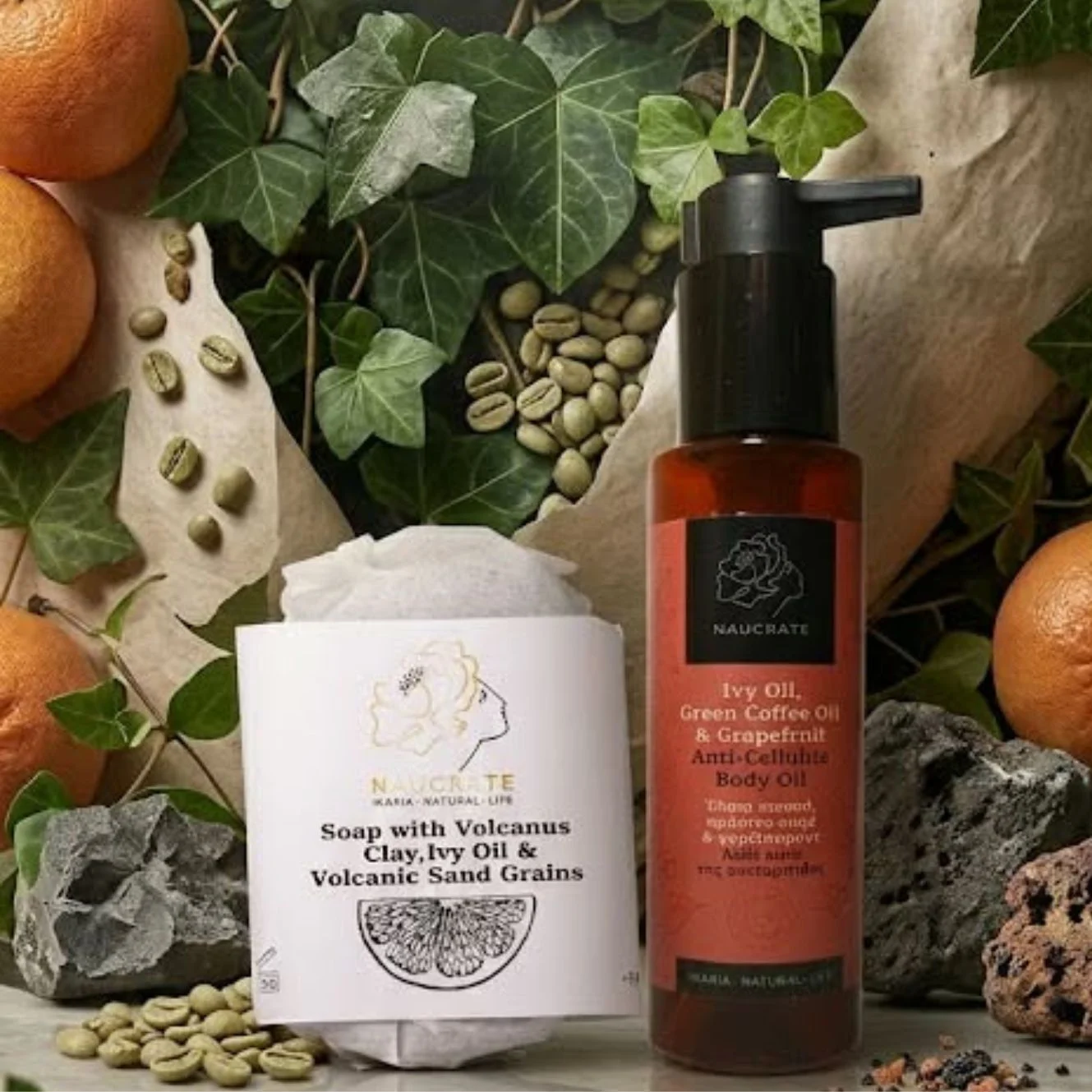 Στη συνέχεια, το Anti-Cellulite Body Oil (100ml) με κισσό, πράσινο καφέ και γκρέιπφρουτ προσφέρει ενυδάτωση, ελαστικότητα και τόνωση της επιδερμίδας. Η σύνθεσή του είναι σχεδιασμένη για καθημερινή χρήση, προσφέροντας ευχάριστη αίσθηση χωρίς καψίματα, σε αντίθεση με προϊόντα που δημιουργούν θερμότητα.
